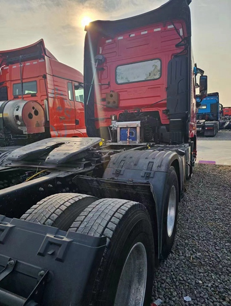 新到梁山華通二手車市場一臺21年3月份的天龍旗艦牽引車,560馬力手動擋帶液緩,速比3.64帶高低板高欄,全車鋁合金鋼圈,車況精品,支持全國提檔,買精品二手車來梁山華通二手車市場。