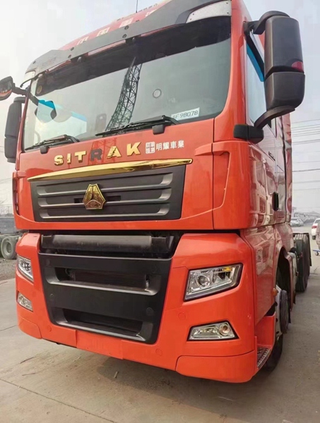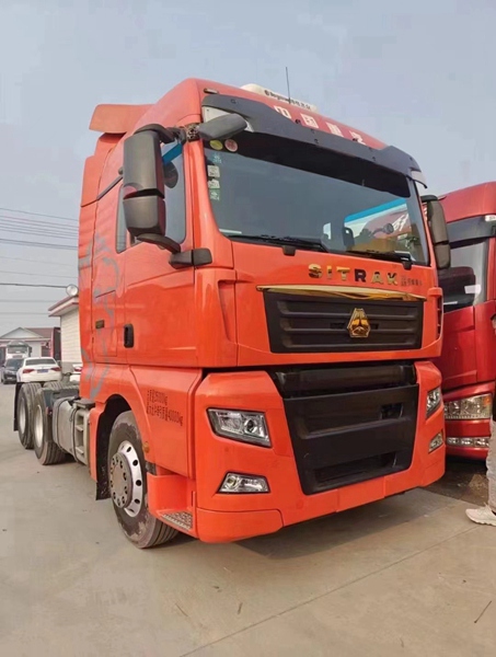 新到梁山華通二手車市場一臺21年3月金標汕德卡牽引車,二手汕德卡牽引車,540馬力自動擋,采埃孚變速箱帶液緩,駐車空調(diào)、采暖、全車新輪胎等,車況精品。