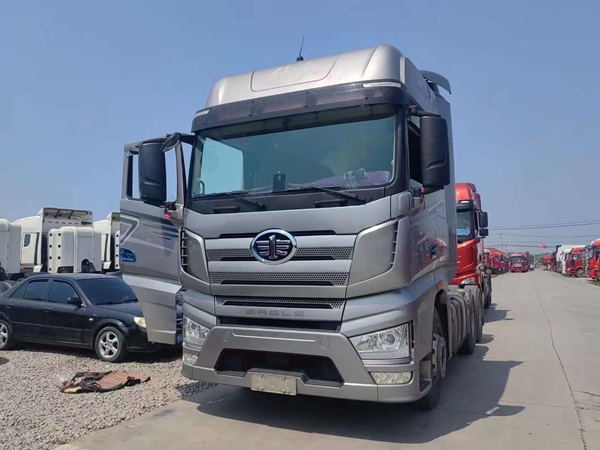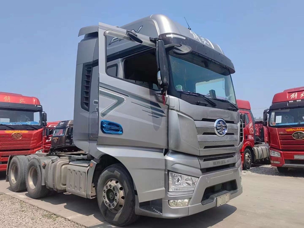 新到梁山華通二手車市場一臺精品二手解放牽引車,21年跑車,二手解放大J7牽引車,國六排放,采埃孚自動擋帶液緩,全車鋁合金鋼圈,車況精品,包提全國。買二手貨車就到梁山華通二手車市場。